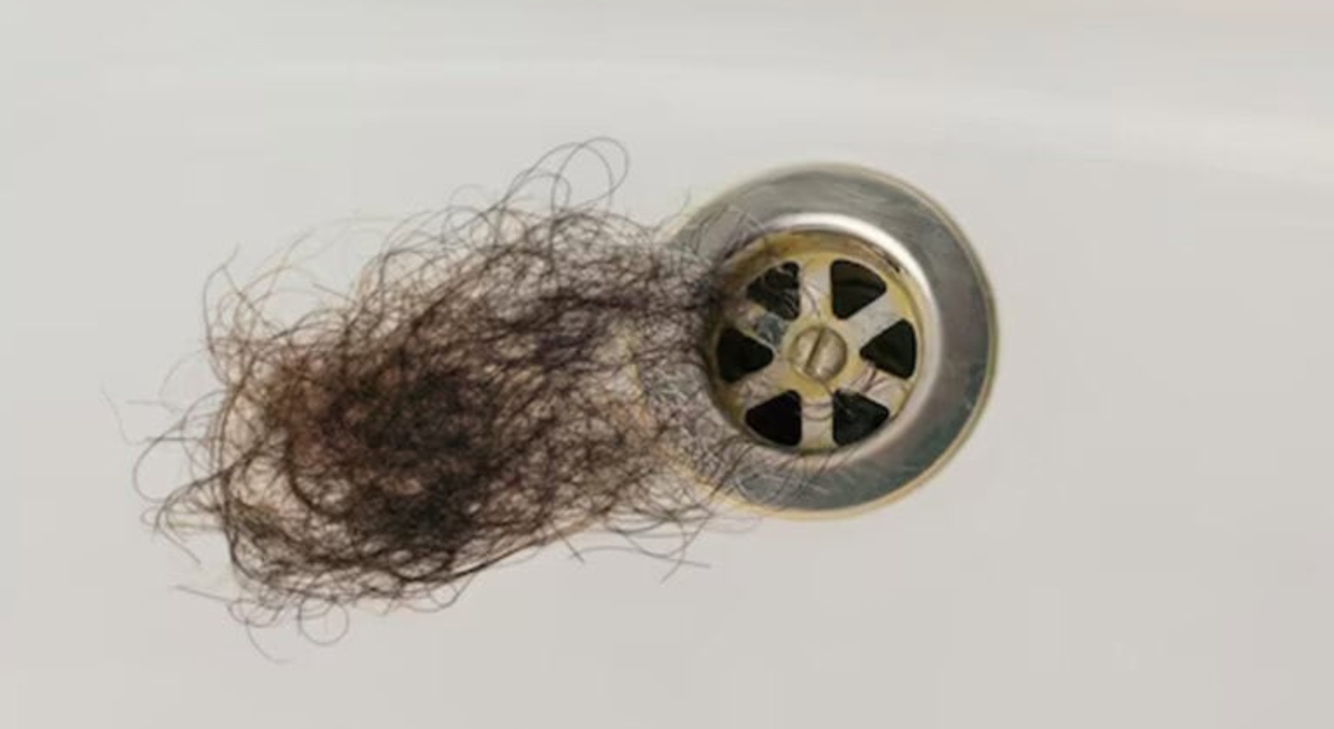 Onder de douche hetzelfde beeld: plukken haar die in het putje achterbleven.