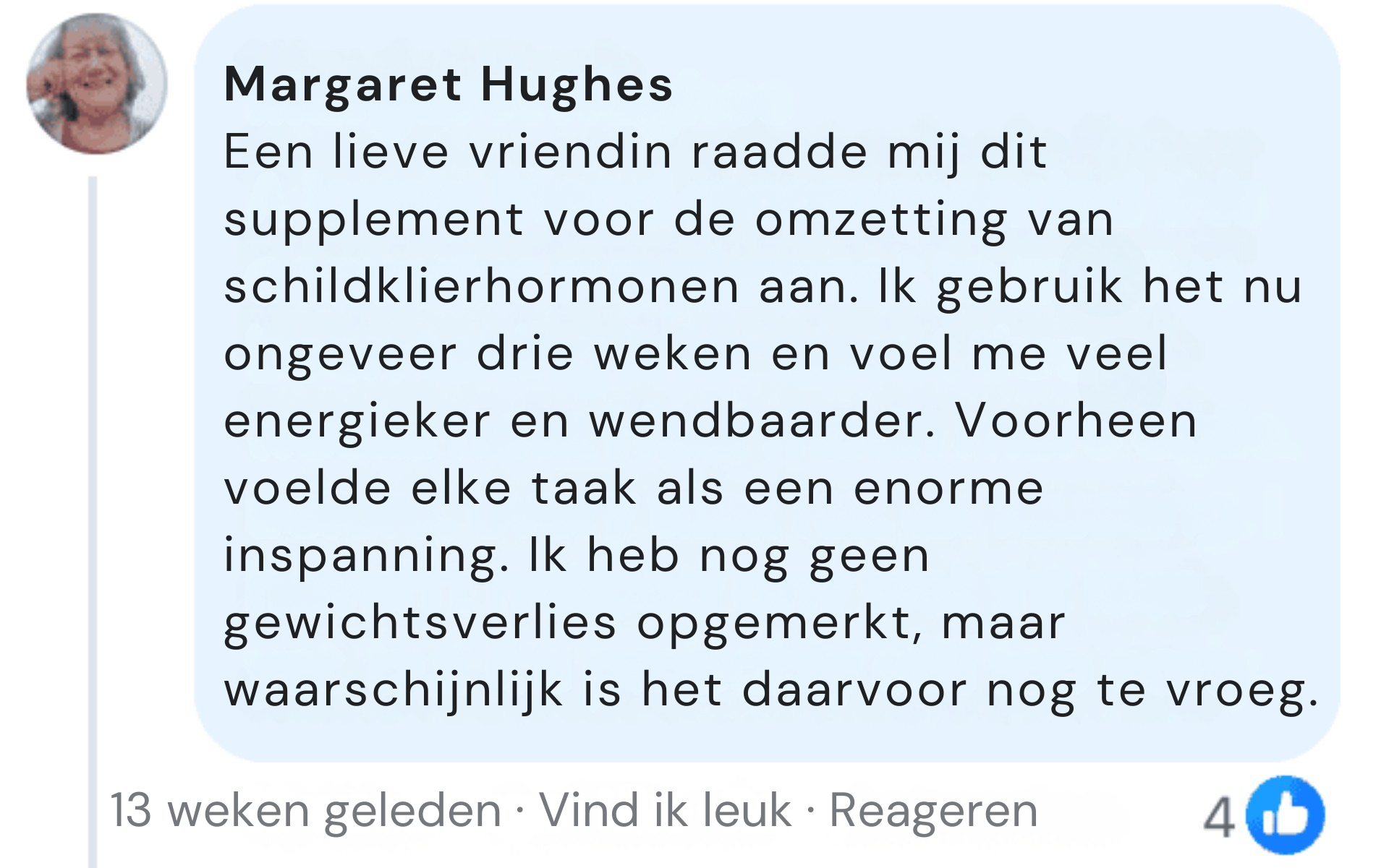 Zeker een aanrader. Fijn dat het een 100% natuurlijke formule is, ontwikkeld door specialisten in schildklierondersteuning. Ik merk dat mijn energie toeneemt en mijn stemming beter is.