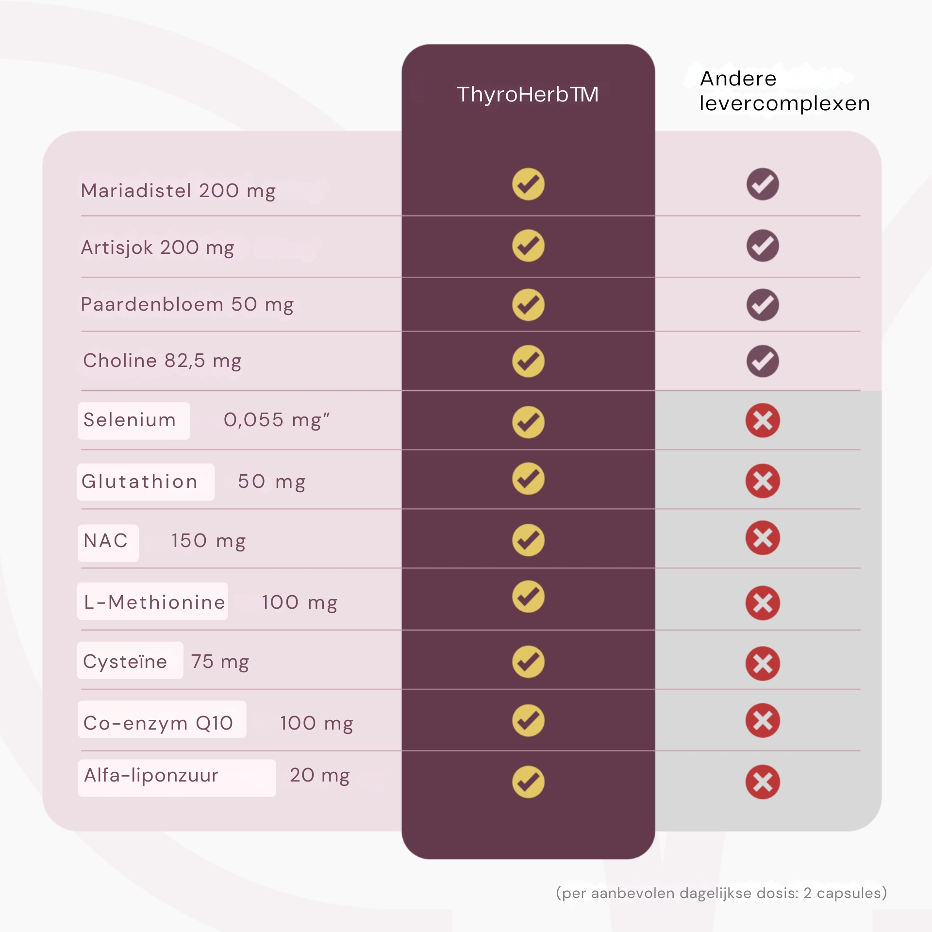 Omdat ThyroHerb™ 11 perfect op elkaar afgestemde voedingsstoffen bevat, in precies de dosering die je lichaam echt kan gebruiken – niet te weinig, niet te veel.