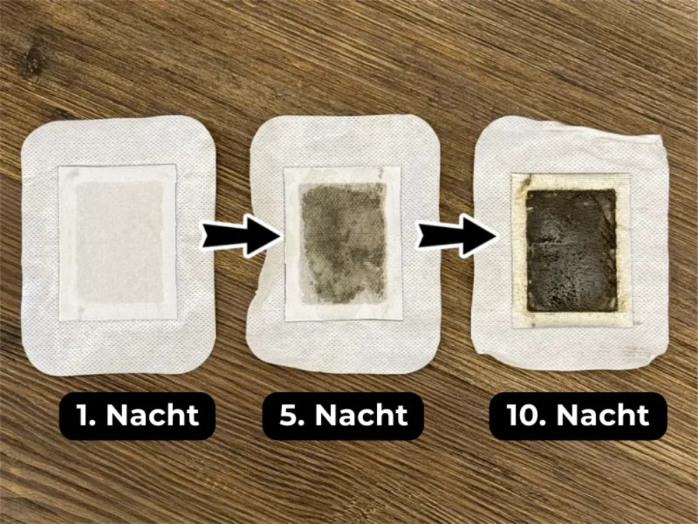 De pleisters werden donkerbruin (wat een consistente ontgifting aangeeft).