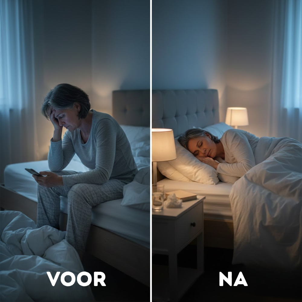 "Ik werd elke nacht meerdere keren wakker en voelde me ’s ochtends uitgeput. Sinds ik dit gebruik slaap ik veel rustiger en word ik nauwelijks nog wakker. Het verschil merk ik niet alleen ’s nachts, maar vooral overdag: meer energie en een helderder hoofd."